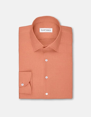 Crafted with the fine pure linen, this custom-made amaranth pink shirt with its bold hue will have you standing out from the crowd. Express yourself in comfort and confidence with this stylish look.