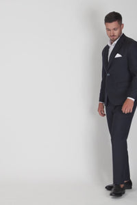 The Astor Dark Navy Twill Suit is an elegant and timeless professional wardrobe staple. Versatile for a variety of occasions, get ready to look your best in this custom made suit, wherever you wear it.