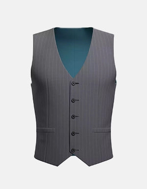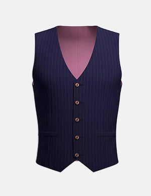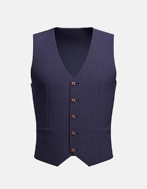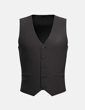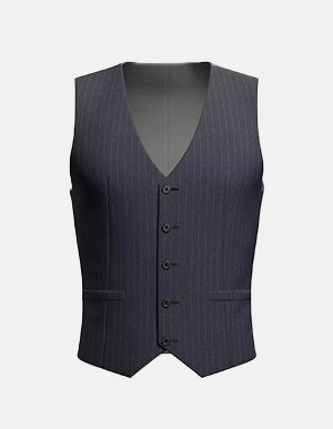 Indulge in the bold and timeless elegance of our Black Pinstripe Vest. cut from Super 120s pure merino wool, this custom-made piece exudes sophistication and sharpness. Elevate your look with a touch of luxury and a classic statement.