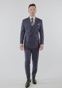 Elevate your style with the British Navy Checked Rockafeller Suit, crafted from luxurious super 130s merino wool. This double-breasted design features a low V six-button front and wide peak lapels, offering a bold yet refined silhouette. Perfect for making a confident statement, this suit combines classic tailoring with modern sophistication for the discerning gentleman.