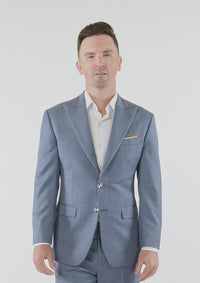 This Vista Blue Sharkskin Jacket is a must-have for any fashion-forward individual. With its sharp and effortless design, it will elevate any look and make you stand out. Cut from Super 120s 100% merino wool, its eye-catching custom made fit will leave you feeling and looking like the best dressed person in the room.