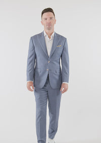 Elevate your style with the sharp, custom-made Vista Blue Sharkskin Suit. Make a statement with its head-turning design that exudes cool and confidence. Expertly crafted to fit you perfectly, the Super 120s 100% merino wool will have you looking your best for any occasion.