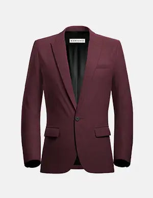 The Claret Red Thompson jacket brings serious style with its structured shoulders and sharp peak lapels. Built from our bamboo-blend fabric that naturally regulates temperature, this 260 GSM piece works solo or paired with different trousers for a more versatile look.
