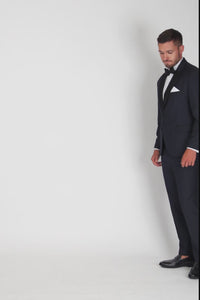 Look your best in the Dean Dark Navy Twill Tuxedo. This timeless design exudes sophistication and elegance for any formal occasion. Crafted from luxurious twill fabric, the dark navy shade adds an air of subtle class and exclusivity. Be the envy of the night in this classic, tailor-made piece.