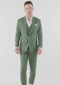 Step into the luxurious comfort of the Aspen Green Hopsack Suit. Make a statement and turn heads with this custom made suit that exudes style and confidence. Cut from a premium bamboo/wool/linen/silk blend from Cavani, elevating your wardrobe has never been easier than with this bold and captivating suit.