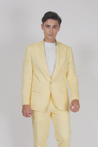 Experience true elegance in this Liberty Light Yellow Linen jacket. Handcrafted from 100% linen, this eye-catching custom made blazer will make you look and feel like a million bucks with its bright and stylish summer vibes. Perfect for stand out occasions, your exquisite outfit will turn heads.