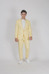 Experience true elegance in this Liberty Light Yellow Linen Suit. Handcrafted from 100% linen, this eye-catching custom made suit will make you look and feel like a million bucks with its bright and stylish summer vibes. Perfect for stand out occasions, your exquisite outfit will turn heads.