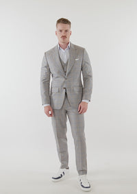 Crafted from luxurious Super 130s pure merino wool with a refined 280 GSM weight, this Milano Grey Checked Suit by Cavani offers exceptional comfort and durability. Its wide notch lapel adds a sophisticated touch, making it the perfect choice for those who aspire to timeless elegance and confident style.