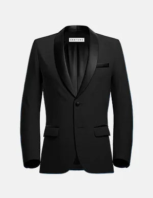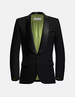 This complete black tuxedo suit represents classic formal style at its finest. Tailored from luxurious Super 130s Merino wool, it features a distinguished wide shawl lapel and elegant satin buttons. Designed to work in any season, this suit ensures you look confident and sophisticated, whether you wear the complete set or mix and match the pieces.