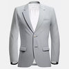 Sophisticated pale blue suit in Super 110s merino wool by Vitale Barberis Canonico. Features two-button jacket with notched lapels, structured shoulders, and matching flat-front trousers. The 250 GSM Italian fabric delivers exceptional drape and year-round comfort for business and formal occasions.