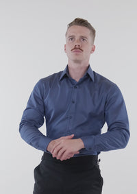 A royal blue shirt woven with a refined dobby dot pattern accented in subtle brown tones. Crafted from a cotton-poly blend, the medium-weight 105 GSM fabric combines breathable comfort with durability and wrinkle resistance. The micro dot design adds sophisticated texture, making it versatile for both professional and casual styling. Easy-care construction ensures long-lasting color retention and minimal maintenance.