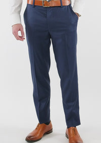 These royal blue dress pants feature performance stretch Super 120s merino wool blend for the perfect balance of comfort and refinement. The flat-front design and tailored fit create a clean silhouette, while the technical fabric provides natural breathability and maintains an impeccable drape throughout the day.