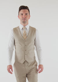 Add sophistication to any outfit with the Sand Herringbone Vest. Made from the same premium Super 130s merino wool as our Ellis collection, it creates a seamless, tailored appearance. The five-button front gives you a clean, streamlined look that works perfectly over a dress shirt or as part of a three-piece ensemble.