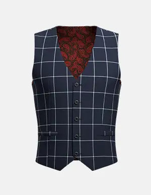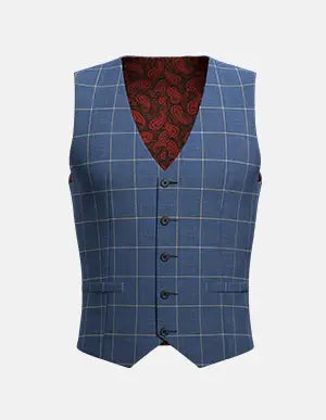Crafted for modern individual looking to make a statement, the Sky Blue Windowpane vest brings a bright and modern style. Expertly tailored for a custom fit, this vest pairs exceptionally well with khakis and light colored chinos.