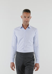 A Sky Mist blue shirt accented with a refined micro dot pattern that brings subtle texture and visual depth. The understated design elevates the classic light blue shade, making it versatile for both casual and business casual settings. Crafted from natural cotton with a 105 GSM weight, the fabric delivers soft comfort, breathability, and easy-care durability—perfect for year-round wear. The micro dot weave offers a sophisticated alternative to plain fabrics, combining timeless style with modern performance.