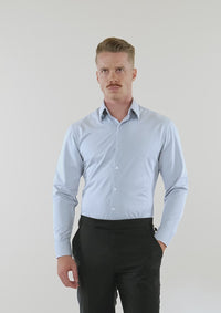 Steel blue shirt crafted from ultra-soft bamboo fabric blend. Features classic collar, long sleeves, and tailored fit. The smooth, fine weave offers breathable comfort and natural stretch for all-day wear.