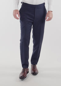 Embrace luxury and exquisite craftsmanship with the Stratos Blue Sharkskin Pants. Their sleek design and classic look make them a must-have for any wardrobe. Custom made from premium Super 110s wool mohair blend by Vitale Barberis Canonico, Italy, these pants are perfect for those who appreciate the finer things in life. Elevate your style.