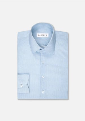 Violet blue shirt featuring a houndstooth pattern in refined blue and white. Performance stretch construction offers enhanced comfort and mobility for all-day wear. Lightweight design with moisture-wicking properties and wrinkle resistance. Professional styling suitable for business and casual occasions.